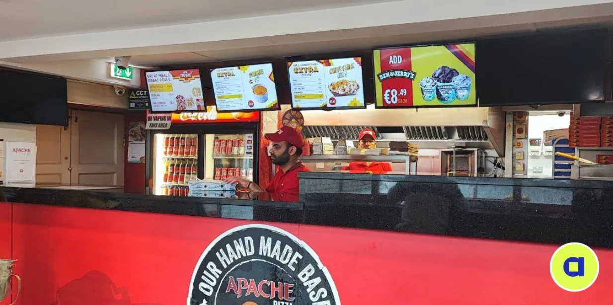Якщо раніше власники закладів переважно конкурували за рахунок цінової політики та меню, то зараз головними інструментами просування є реклама і сервіс. Саме тому digital signage знайшло своє застосування і реалізацію в цій сфері: по-перше, як інструмент для створення борд-меню. По-друге, як пряма реклама, за допомогою якої клієнта можна швидко ознайомити з найбільш релевантними для бізнесу пропозиціями — тими, які приносять найбільший дохід і повністю відповідають запитам потенційного клієнта. Це підвищує лояльність покупця. Тобто з великою ймовірністю він повторно звернеться в даний ресторан або кафе, а це — вагома частина прибутку.